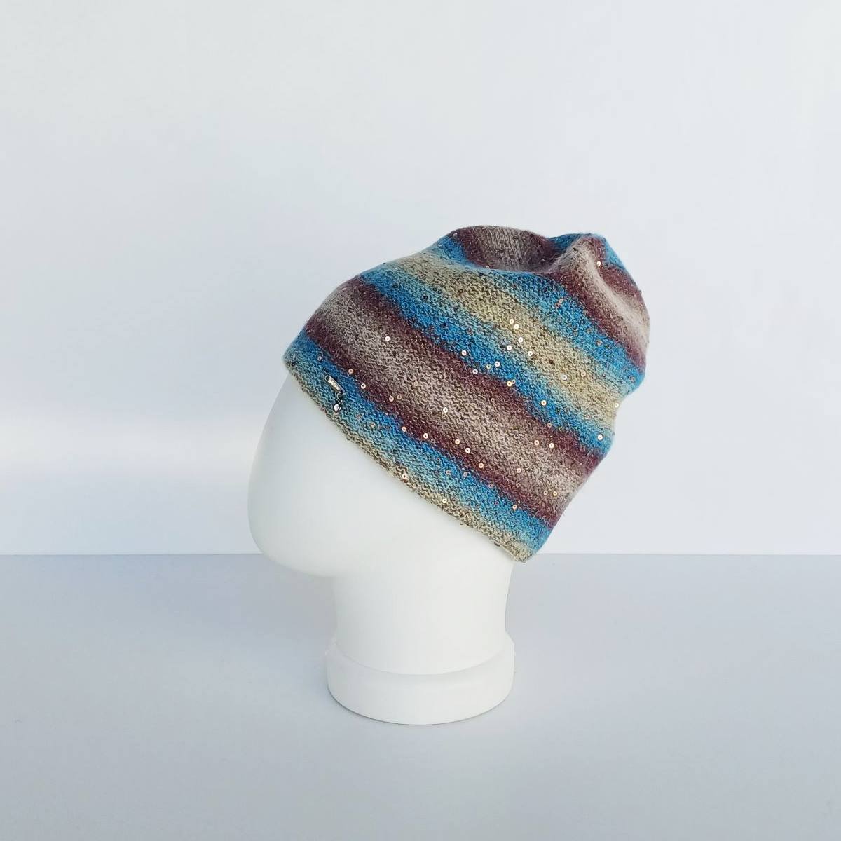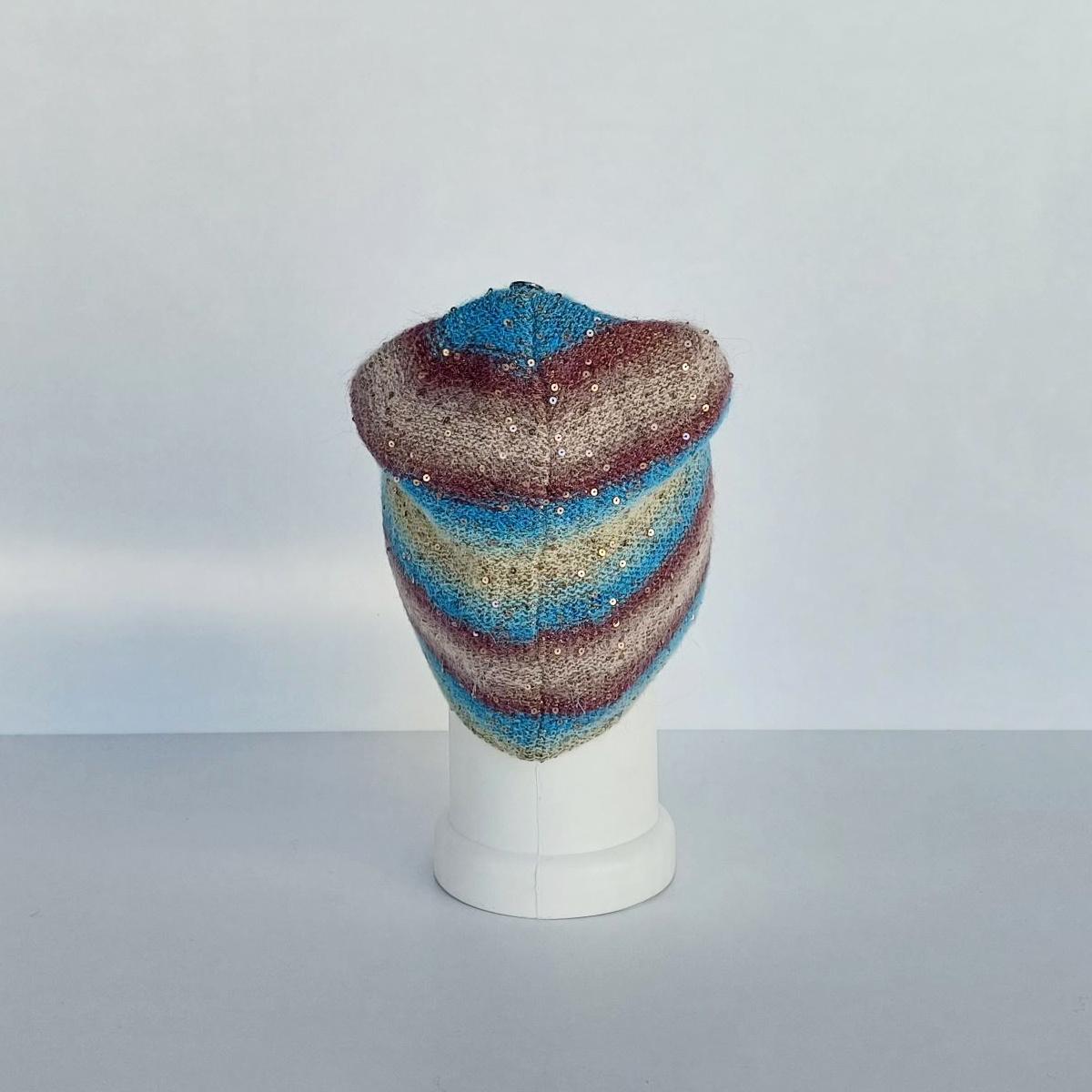 Шапка из радужных нитей с микро-пайетками — это настоящее произведение искусства, которое сочетает в себе уют, стиль и изысканность. Абсолютно волшебное сочетание цветов, плюс сияние, заметное издалека. Микро-пайетки равномерно распределены по всей поверхности, создавая эффект мягкого блеска, который особенно заметен при движении. Благодаря мохеру и альпаке в составе, шапка не только стильная, но и тёплая.
